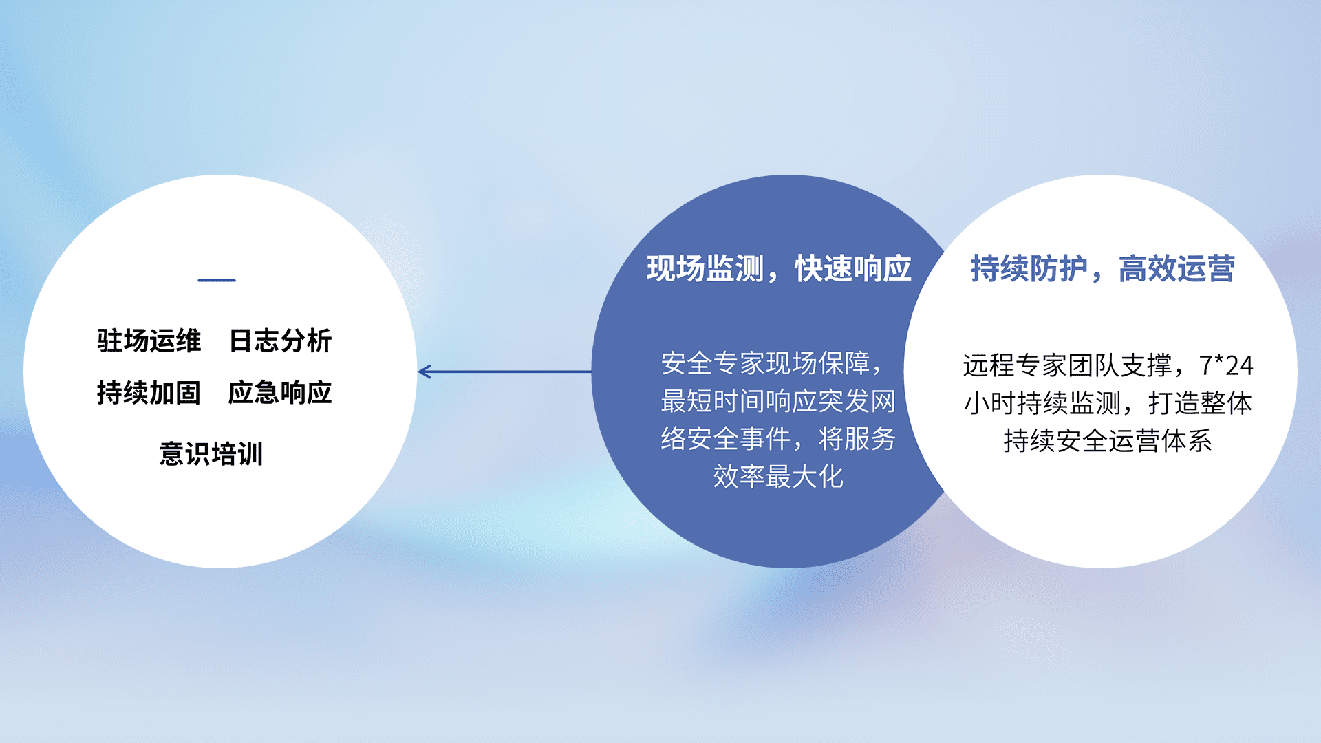 7X24小时持续监测安全事件,保持安全策略有效性,降低资产脆弱性风险,,,精准拦截黑客攻击,,,,减少被黑客利用的机会,,,第一时间遏制,,,,降低损失。。